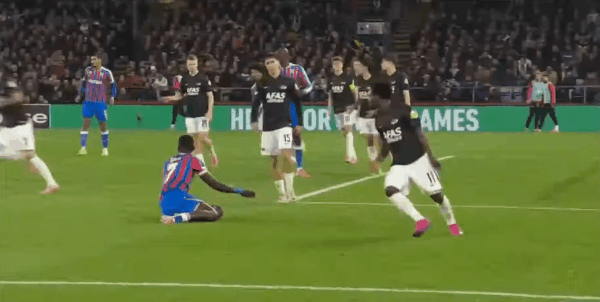 水晶宫首发阵容:1-亨德森、6-格伊、5-拉克鲁瓦、26-理查兹、19-休斯(65’20-沃顿)、8-莱尔马、7-萨尔(65’18-镰田大地)、2-穆尼奥斯(86’17-克莱因)、3-米切尔、10-皮诺(73’55-德文尼)、14-马特塔(86’12-乌切)