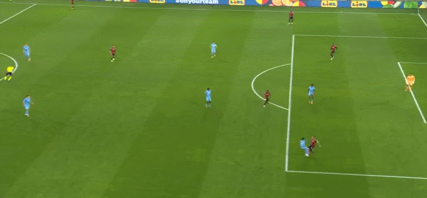 77’布杜维三秒区外得球随即起脚外围射门,皮球高出横梁飞出端线