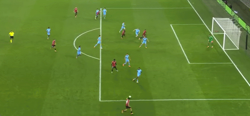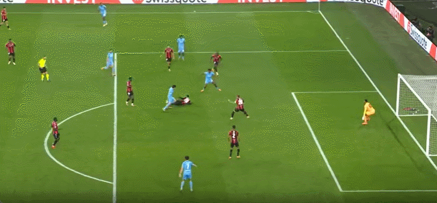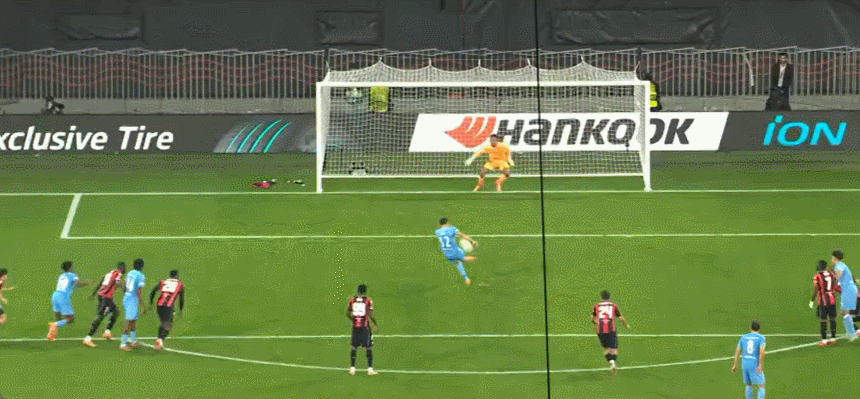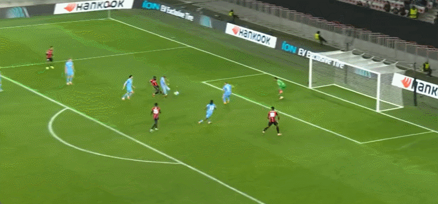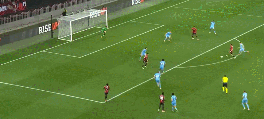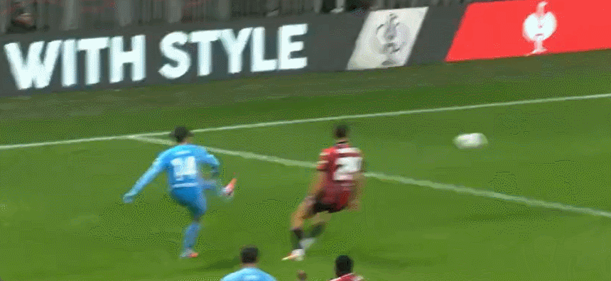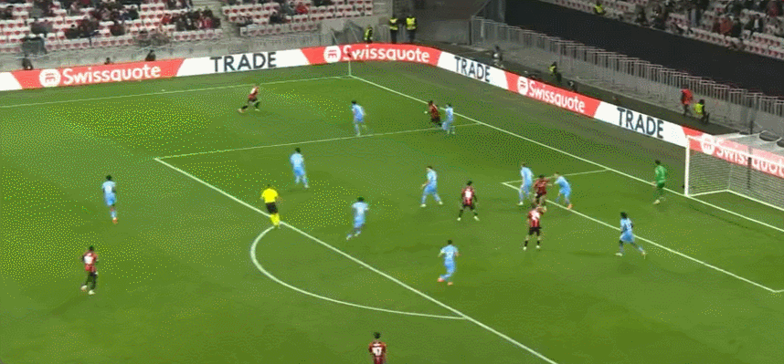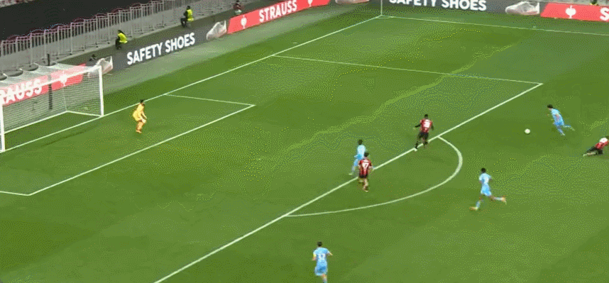 63’尼斯围攻对手,戈维亚吊射击中横梁,萨梅德跟进射门稍稍高出横梁