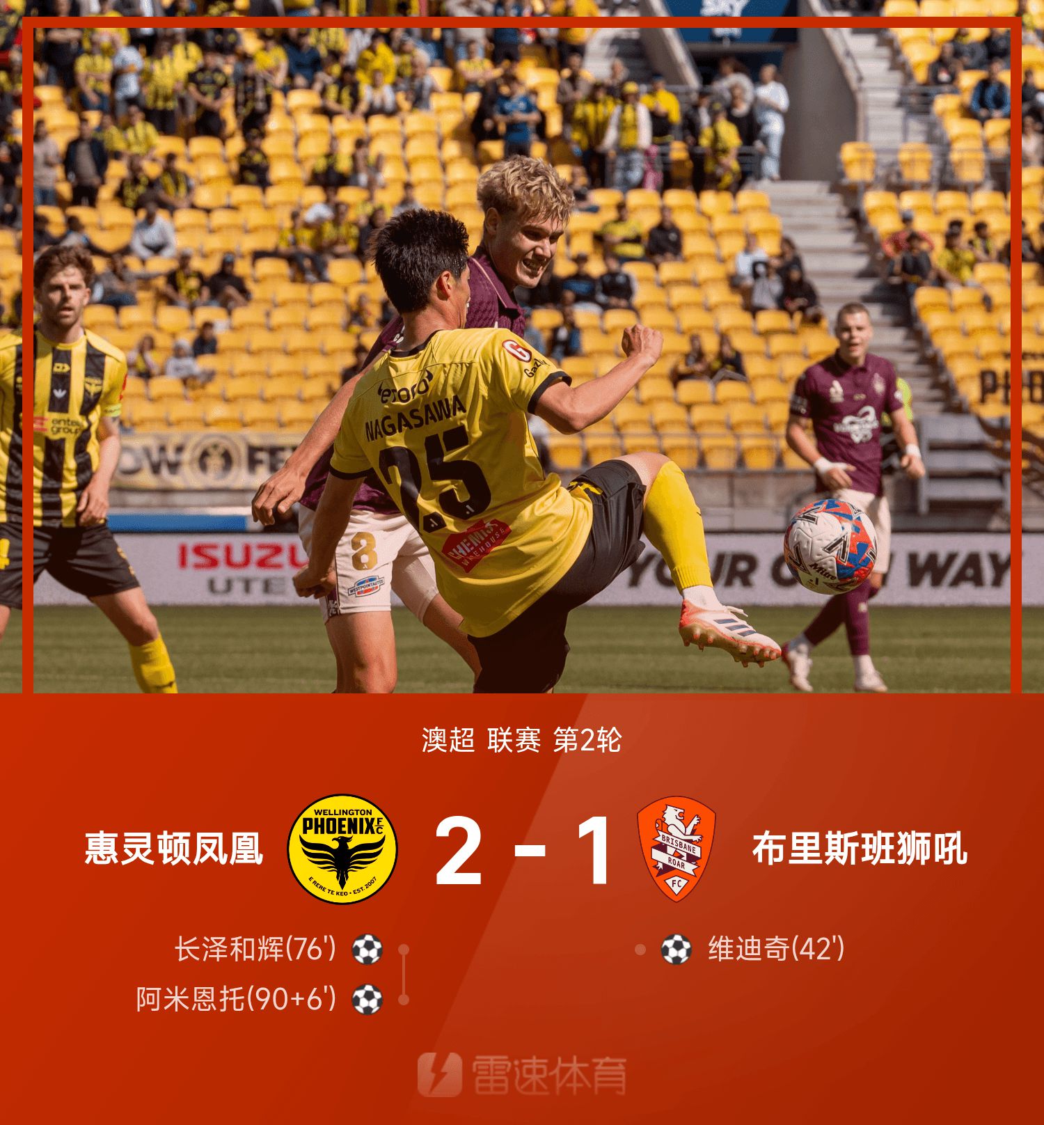 6686体育10月26日讯 25/26赛季澳超联赛事第2轮,惠灵顿凤凰2-1战胜布里斯班狮吼。上半场竞赛,维迪奇抓住詹姆斯差错机会取得进球。下半场长泽和辉抢点破门扳平赛果分,阿米恩托补时最后一投弑旧主。