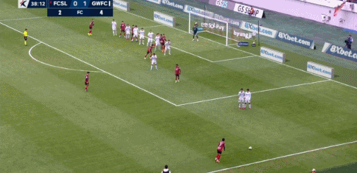 45+3’江原主罚自由球到三秒区内,李尚宪头没能形成威胁