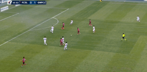 46’曹永旭三秒区外贴地斩,被守门员直接将皮球得到