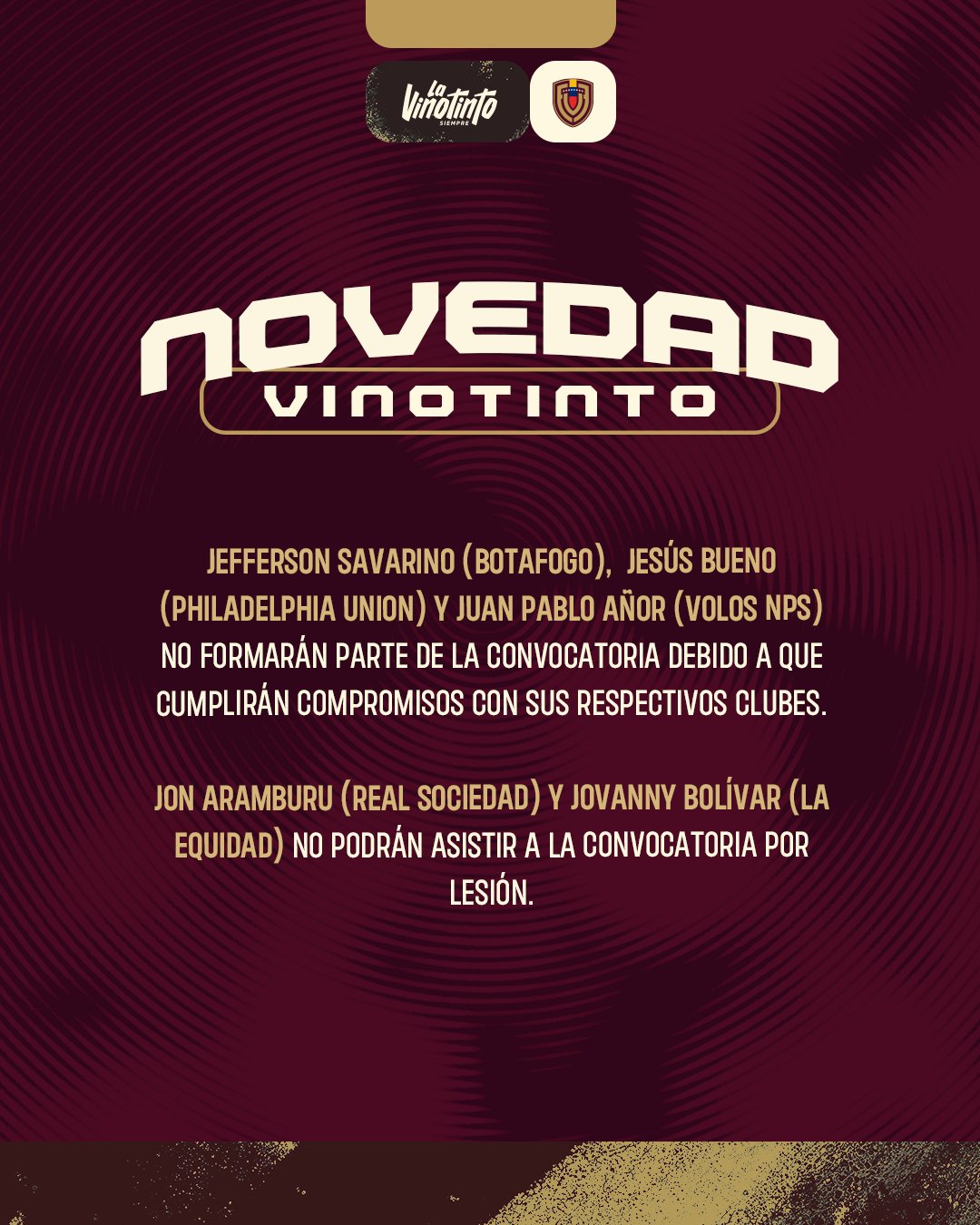 6686体育11月13日讯 委内瑞拉国家队官方宣布,博塔弗戈的萨瓦里诺、沃洛斯的阿诺和费城联合的布埃诺因俱乐部赛会无法报到,无缘出战与澳大利亚的竞赛。