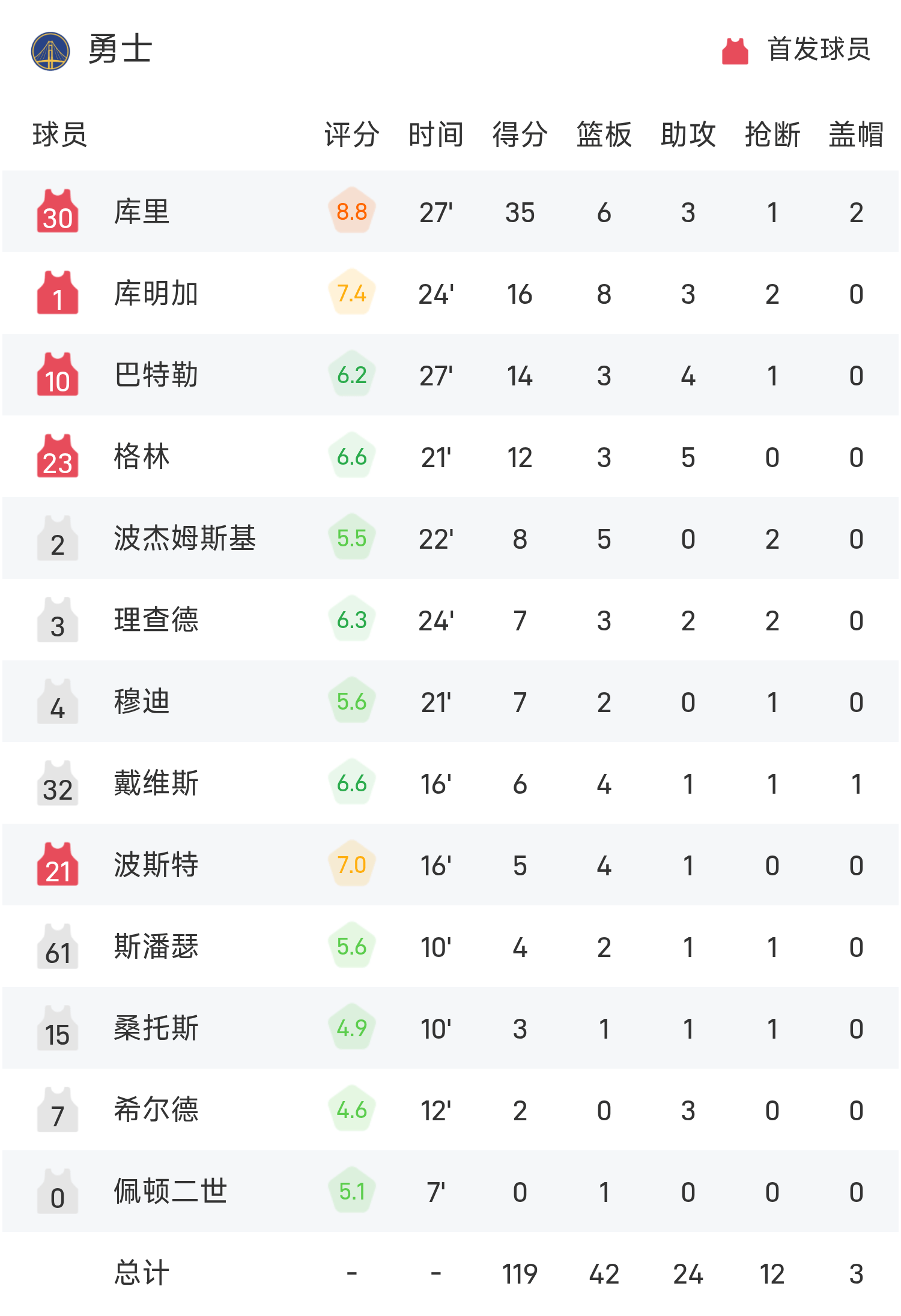 6686体育10月25日讯 25/26赛季NBA 常规赛,开拓者对阵勇士。双方全场战罢,开拓者139-119战胜勇士。阿夫迪亚得到26分5板6助率队取胜,库里空砍全场最高的35分6板3助。