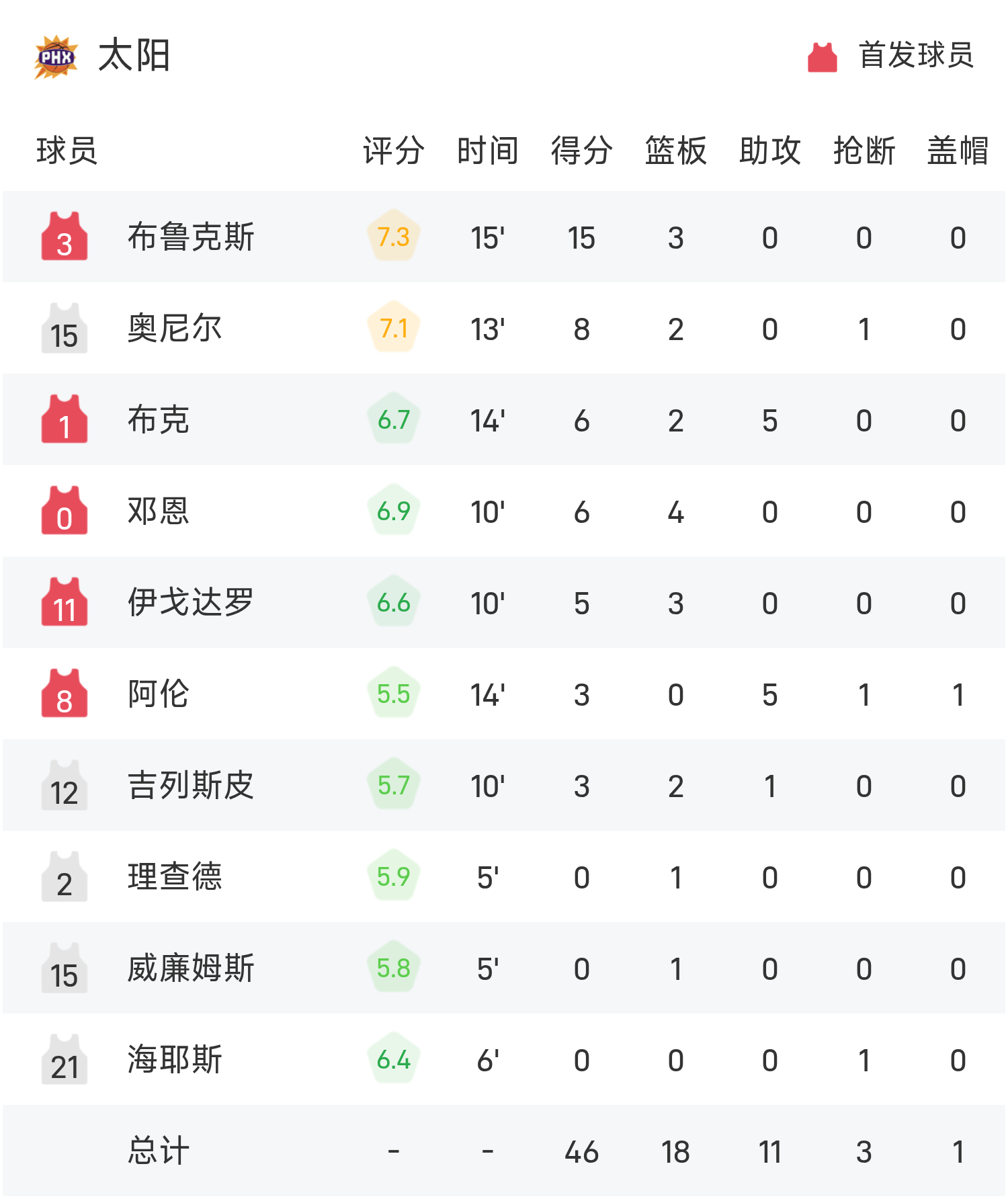 哈登三分球6投5中高效轰下26分3板4助攻,布克仅得8分,快船半场72-56太阳