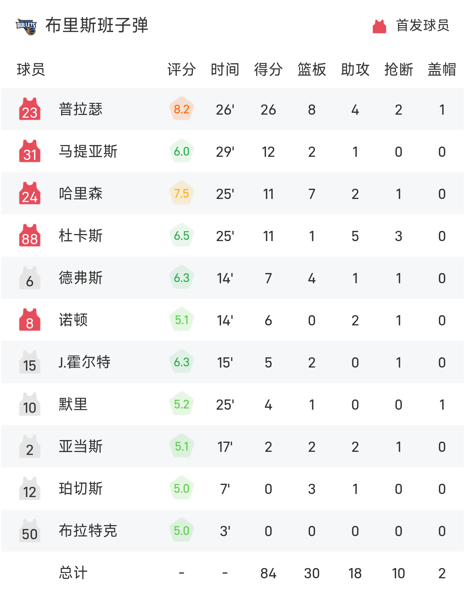 门内加得到25分6板2助率队取胜,普拉瑟空砍全场最高的26分8板4助。
