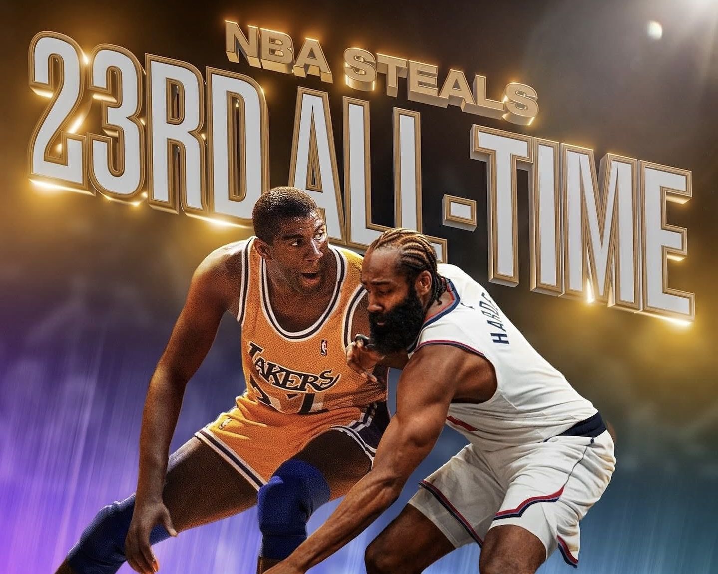 超越魔术师约翰逊!哈登总截球数上升至历史第23位